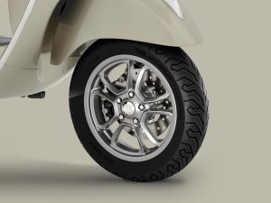 Zorgvuldige aandacht is besteed aan elk detail van de Vespa Gts. De metallic kleuren hebben een glanzende afwerking, het zadel en het interieur passen bij elkaar, chromen elementen zorgen voor een extra vleugje elegantie en de beroemde “stropdas” blijft van Vespa een tijdloos icoon maken.